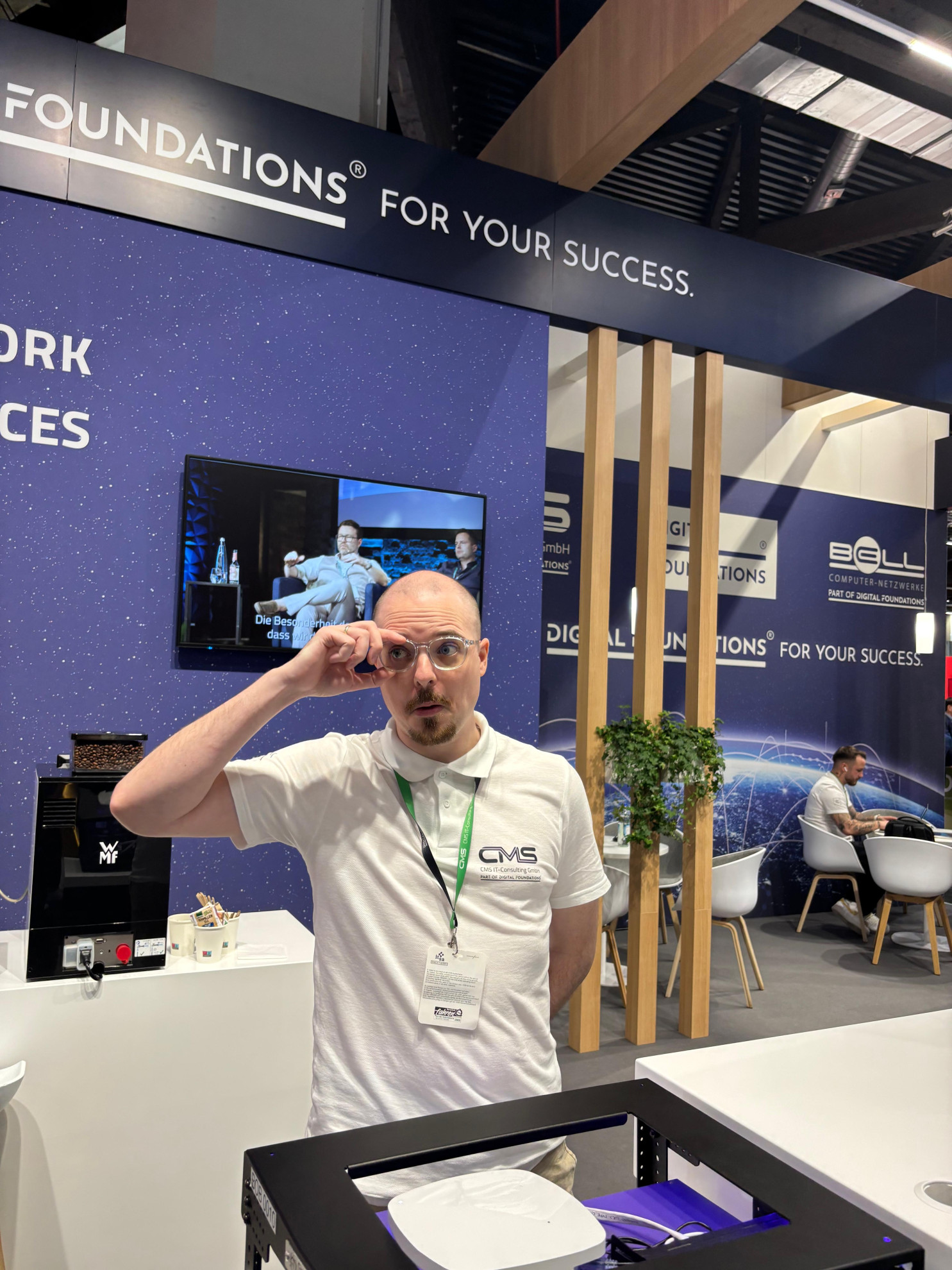 Zum Abschluss der Messe gab es noch einen besonderen Moment: Die Ehrung des Gewinners unserer Verlosung, gesponsert von Westcon Europe, war ein schöner Anlass, um gemeinsam mit unseren Partnern auf eine erfolgreiche Messe anzustoßen.